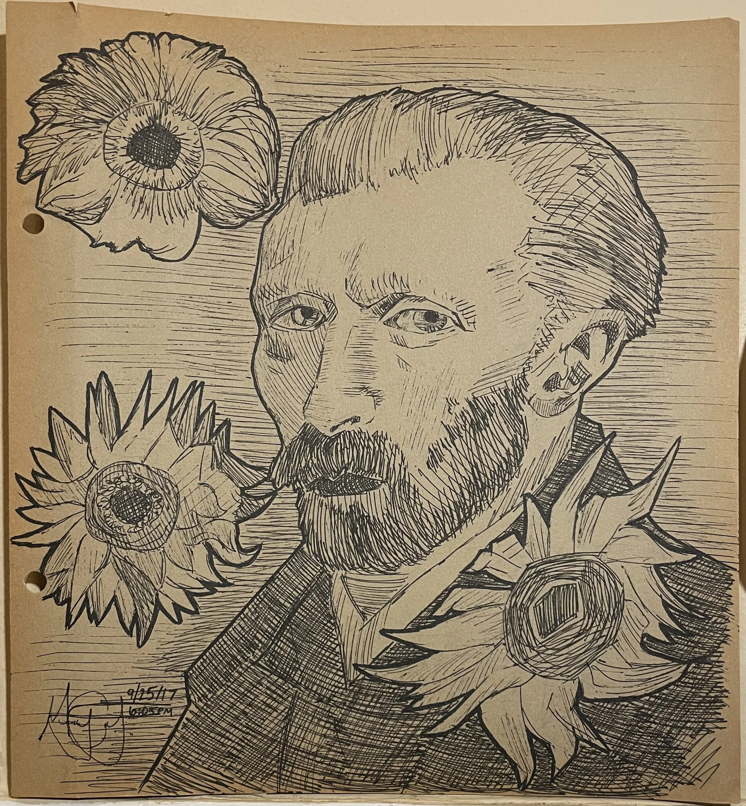 “Van Gogh” | black gel pen on paper | 11.5x12”