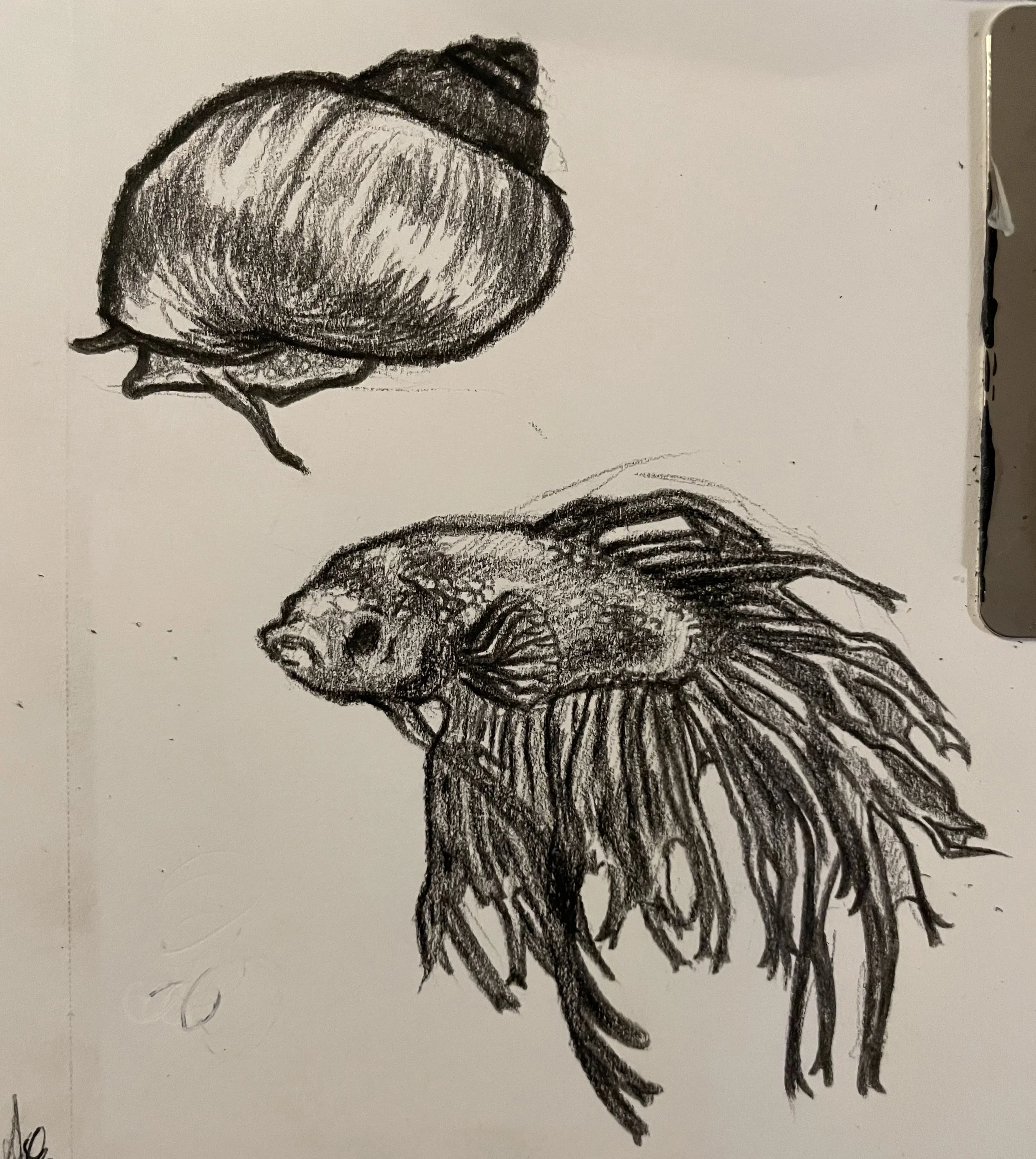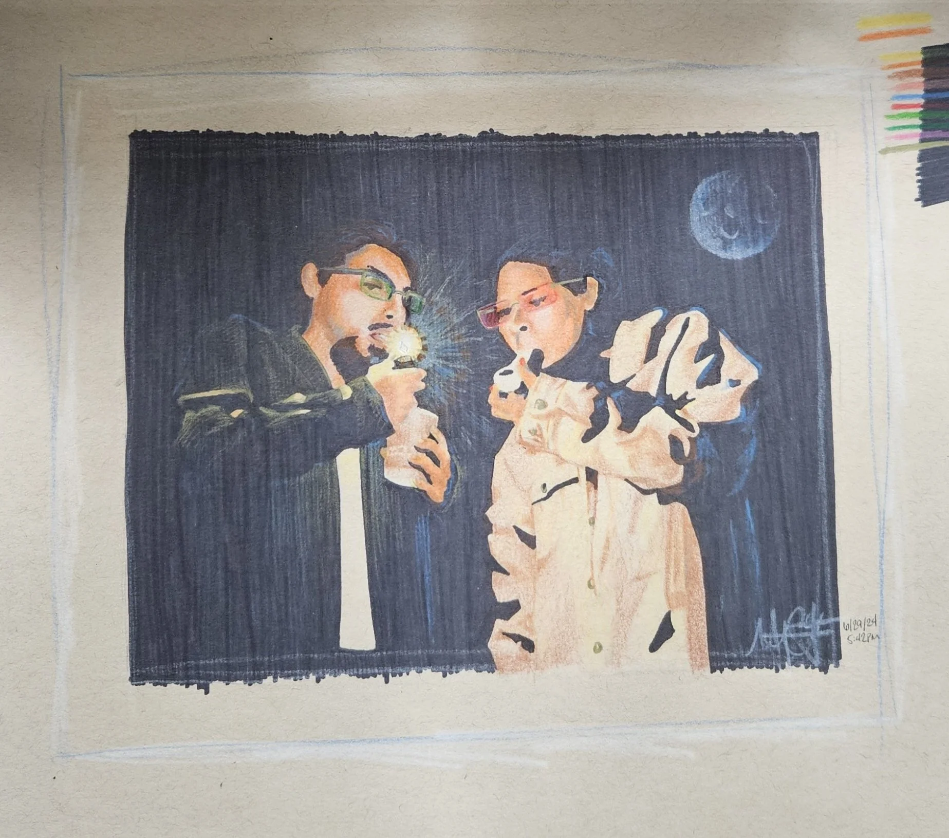 ~8x10” | Sharpie, prismacolor pencils, white charcoal on black paper | Commission